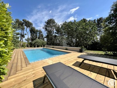 Take the path on the left then immediately on the right trough the pine forest. Go around the pond by a small path on the right that progressively goes back up the hillside to a small vineyards shack after walking at the bottom of an electric pylon. Once at the shack, take the path on the right (going East). You are now on the Estagnol plateau (100 m high).
